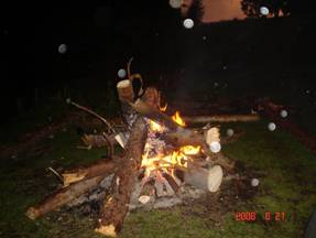 A szentkirályi legények fát vágtak majd közös erővel tábortüzet készítettünk, előkerültek a dobok és egész este önfeledten énekeltünk.